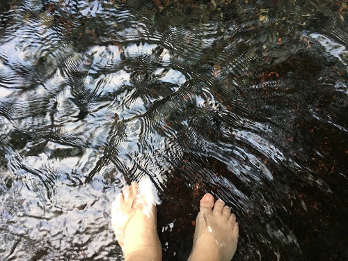 サンダルを脱いで水の中にそっと入る。