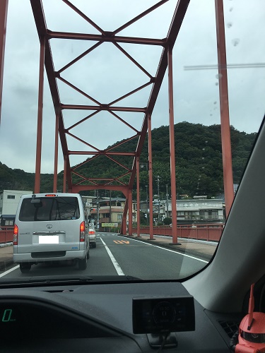 修善寺駅近くの赤い橋を渡ったよ(^-^)