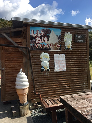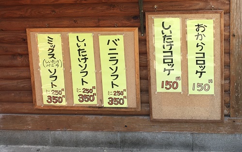「しいたけソフトクリーム」や「しいたけコロッケ」が売っている。