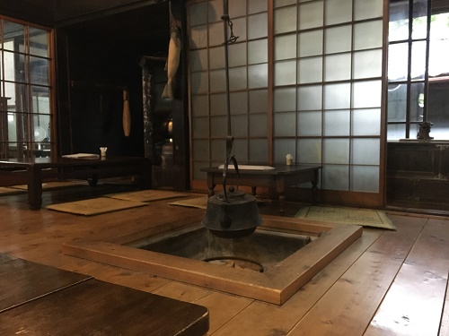 管理人が案内されたテーブルのすぐ近くには囲炉裏もあった。