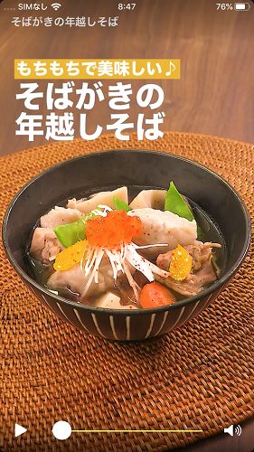 スマホアプリの「DELISH KITCHEN」にも「そばがきの年越しそば」を見つけた。