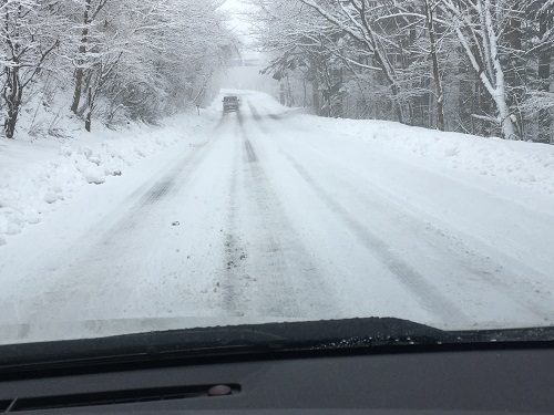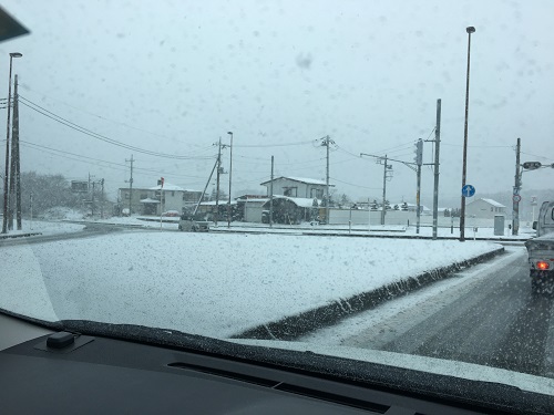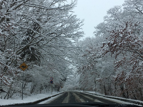 水ヶ塚公園にあと数キロの地点では道路が真っ白に……(滝汗)