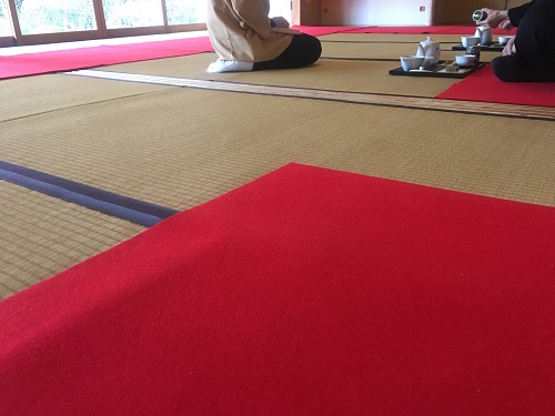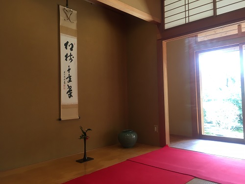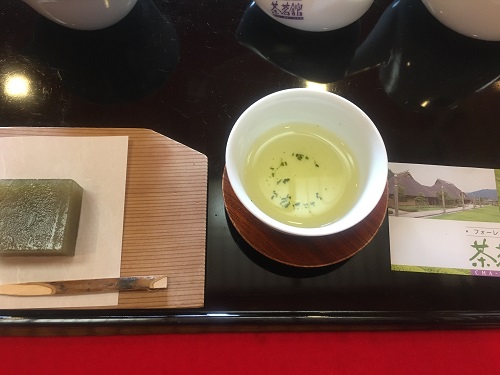 お礼を言って、庭園を見ながらお茶羊羹を食べお茶を飲む。
