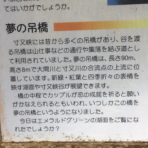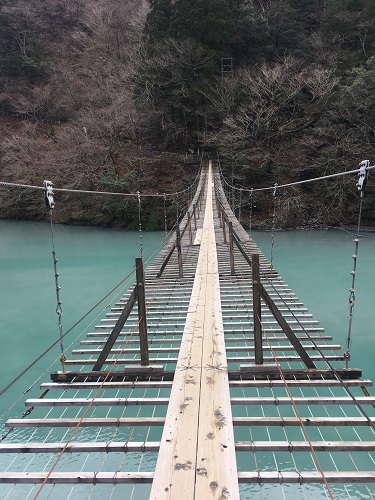 この吊り橋の中ほどでカップルが恋の成就を祈ると