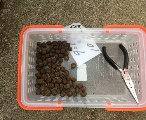 という事で全ての餌を25分ほどかけて練って丸めてしまった。