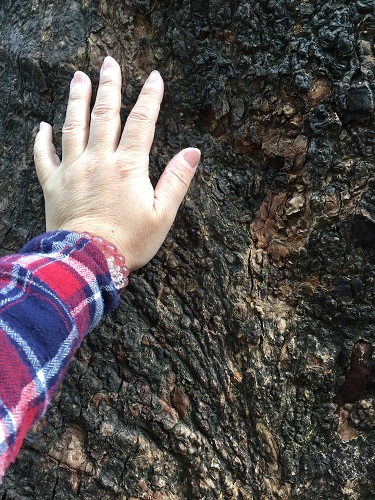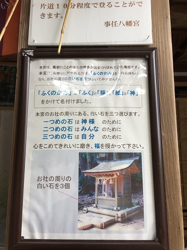 お社の周囲にある白い石を持参した「ふくのかみ」で磨く。