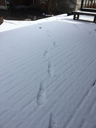 お社の周囲にある白い石を持参した「ふくのかみ」で磨く。