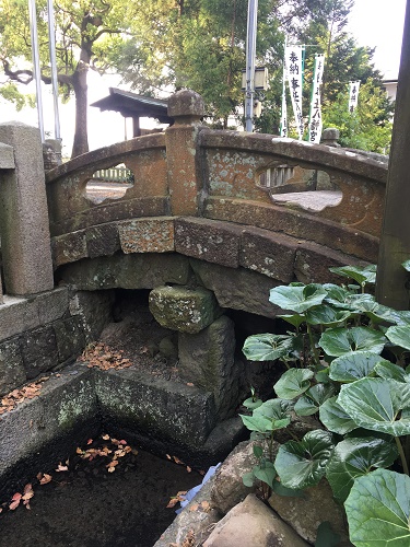 一の鳥居の手前にある太鼓橋の説明をしてくれた。