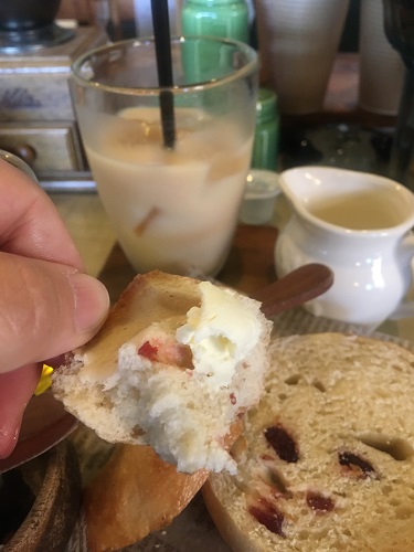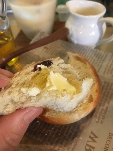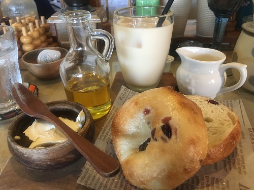 自家製ベーグル(クリームチーズ&ハチミツ)とアイスミルクティーをオーダー。