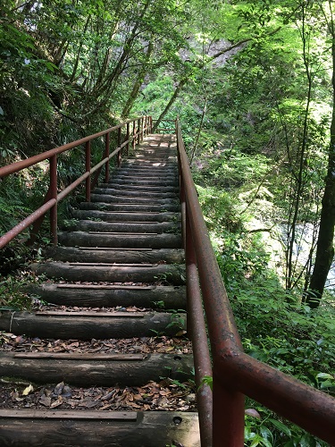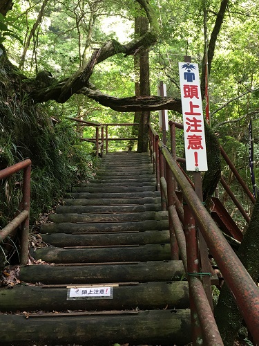 木でできた階段なので濡れているとかなり滑るよね……(滝汗)