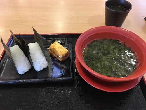 とりあえず「おにぎりセット」のコーヒー抜き、海苔の味噌汁にした。