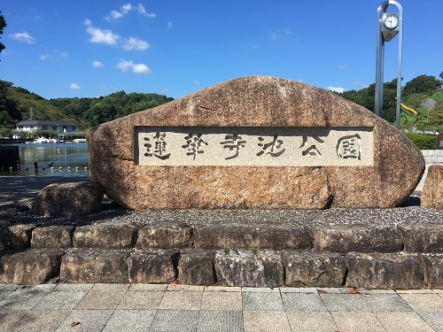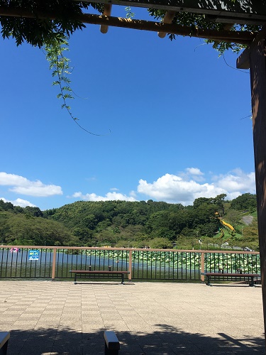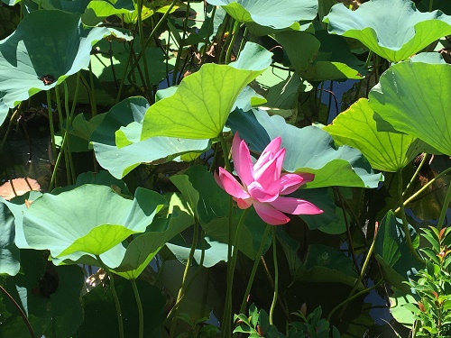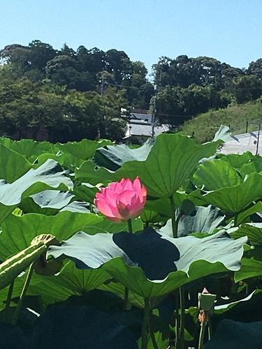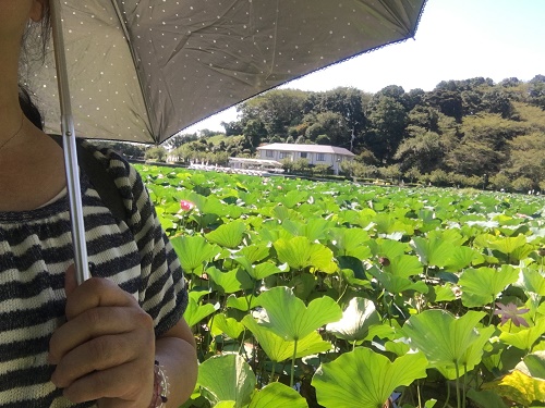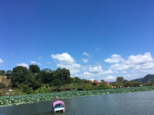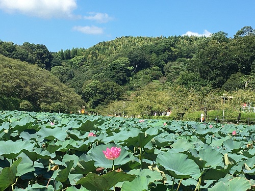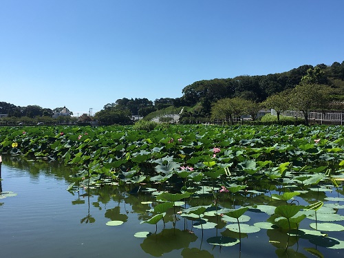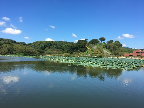 池の半分以上を蓮が群生している。