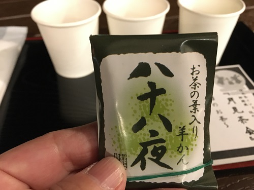 お茶菓子(5種類ぐらいある羊羹から1つ選ぶ)を選ぶと