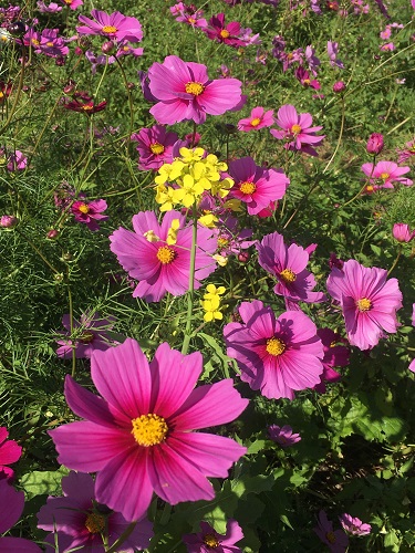菜の花とヒマワリとコスモス、珍しい組み合わせだよね。