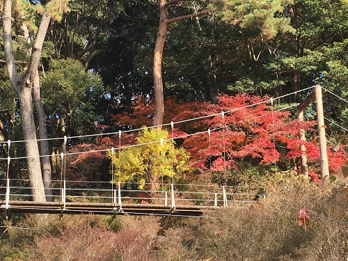 吊り橋の近くにまだまだ色づいている紅葉を発見!!