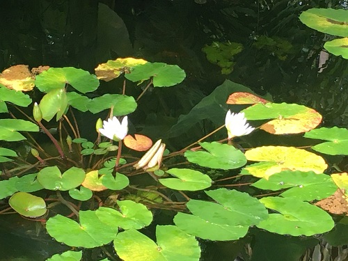 温室には睡蓮があり熱帯魚が泳いでいたり