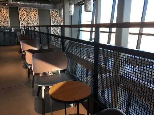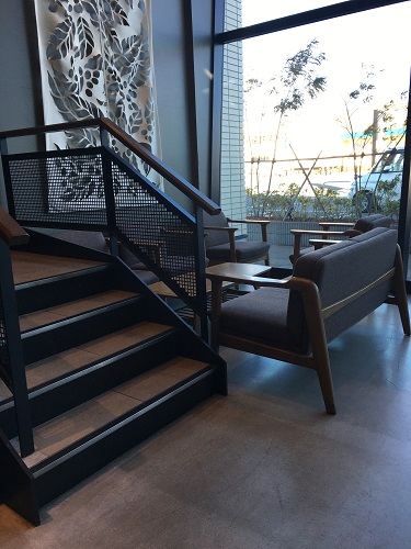 片面はガラス張り、吹き抜け構造で開放感が抜群。