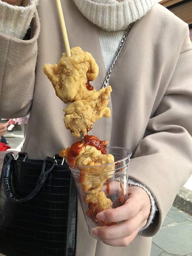 Sちゃんが買ってきたヤンニョムチキンはとっても長い串に刺さっていて