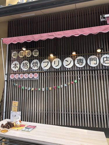 「期間限定本格焼きプリン専門店」と飾りがしてある!