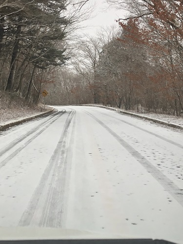 同じく富士山方面に向かう道路はタイヤの跡があるから何台かは通ったらしいが