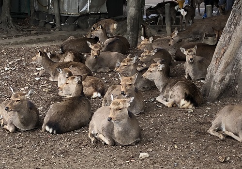 (鹿せんべいは鹿のおやつであり、鹿はどんぐりや芝などを主食としている)