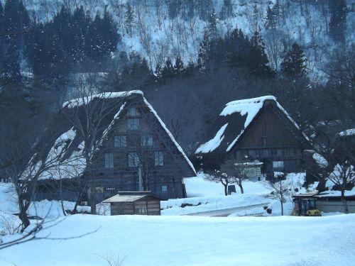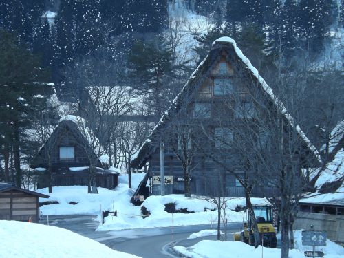そしてこちらのほうが合掌造りの屋根にたくさん雪が積もったままだった。