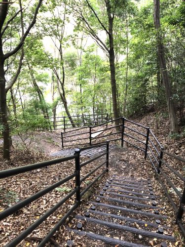 しかし雨が降ってきてしまったので階段を上り戻ることに。