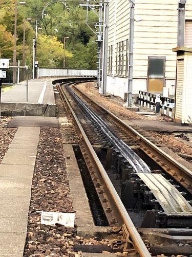 この駅は無人駅だけどアプト式電気機関車の連結や切り離し作業を行う。