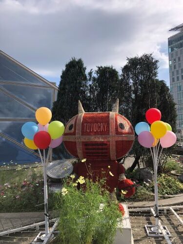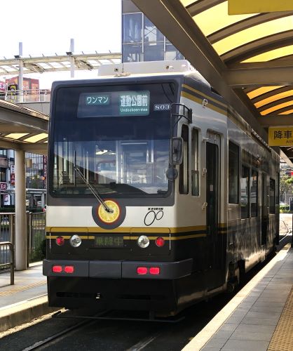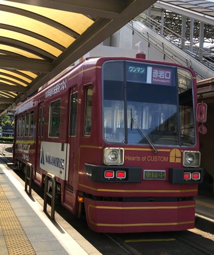 既に豊橋けいりんのラッピング車両の路面電車が停まっている。