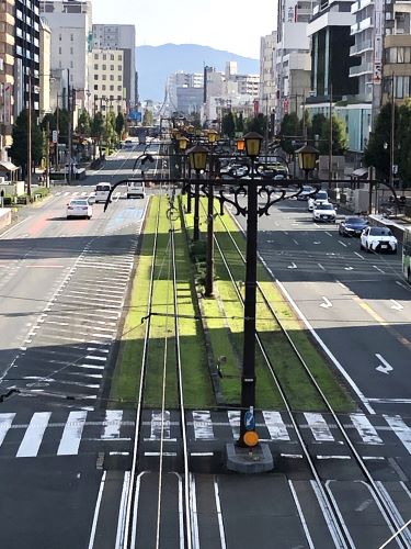 先ほどの路面電車は発進し、反対側からも路面電車がやってきた。