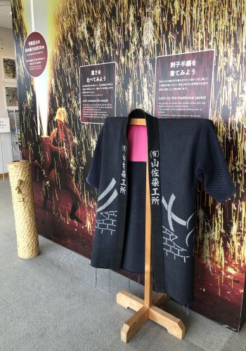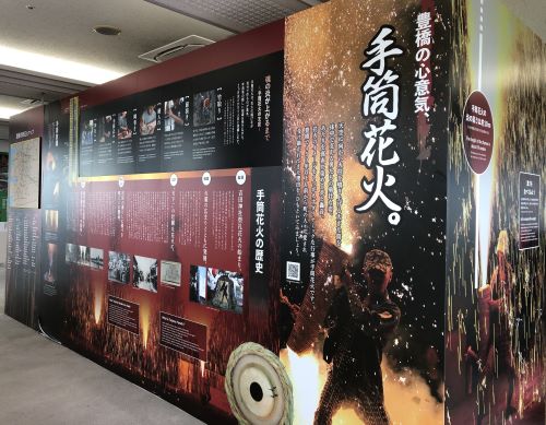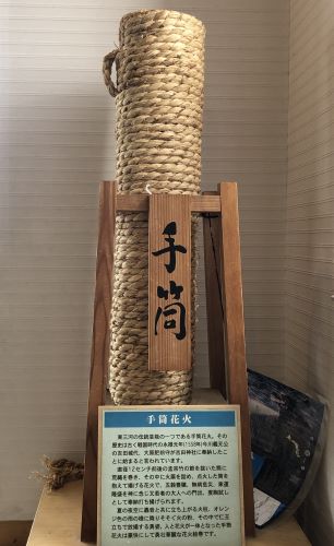 展示パネルや刺子半纏を着る事ができたり、手筒花火を実際に持つことができる。