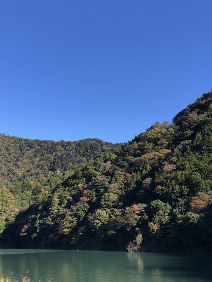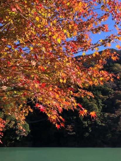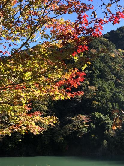 紅葉も色づいてきて、快晴の青い空にとっても映える。