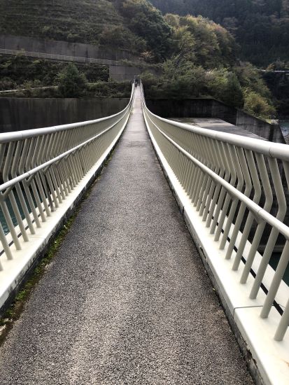 確かに橋の上はダムからの放流で常に湿っている状態だった。