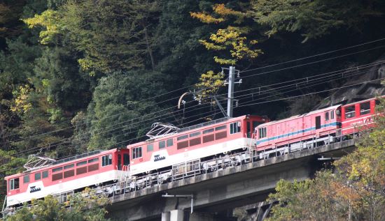 アプト式電気機関車に押される形で井川線が坂道を上って来た!!