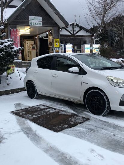 駐車場にも雪が積もっていて、ブレーキテストをしてみた。