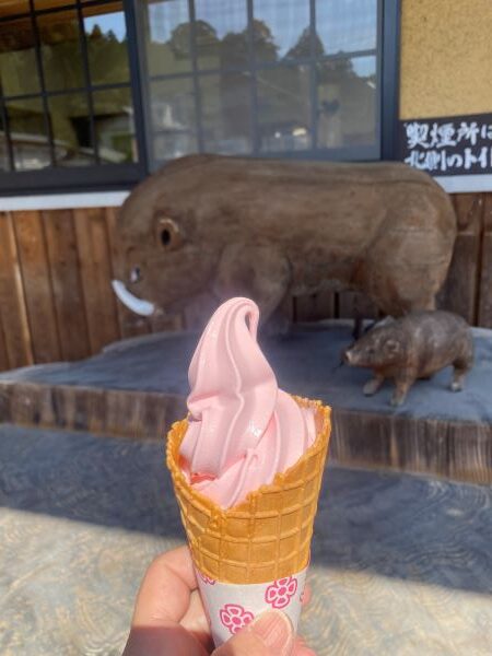 ソフトクリーム(イチゴ味)を堪能!