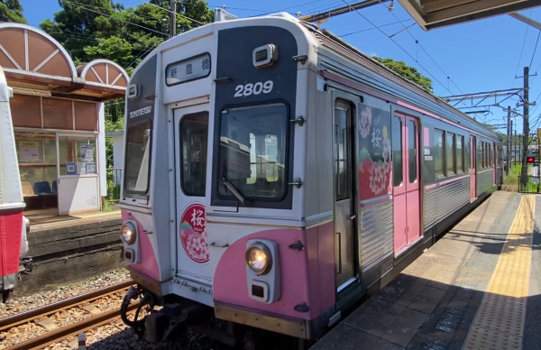 渥美半島で咲く花々をデザインした10種類のカラフルな電車が運行している。