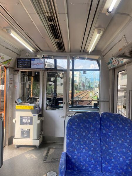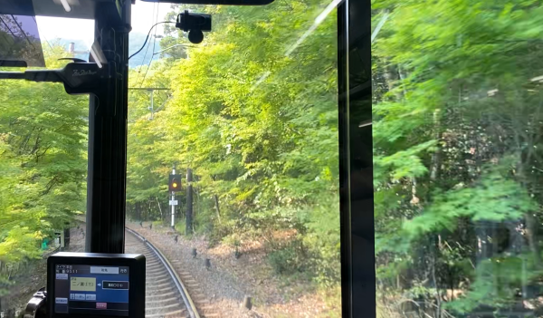 市原駅〜二ノ瀬駅間にある「もみじのトンネル」を見るために運転席後方に移動。
