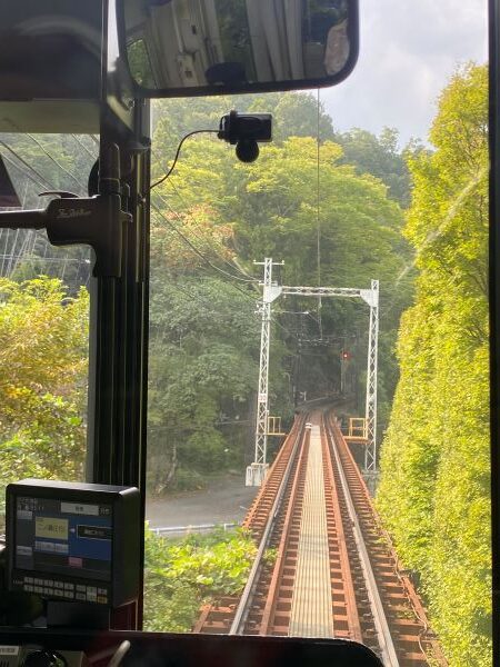 上り出町柳行に乗ると、かなり急な坂を下っていくのが分かる。