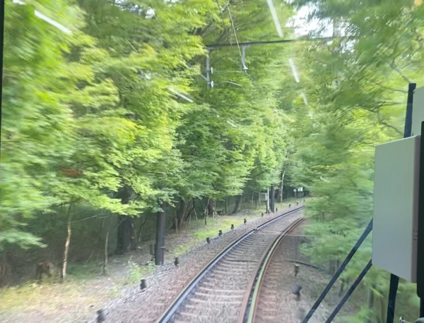 再び「もみじのトンネル」を通り抜けたあと、宝ヶ池駅で下車。