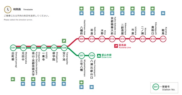 叡山電鉄は出町柳駅から八瀬・鞍馬への2路線。