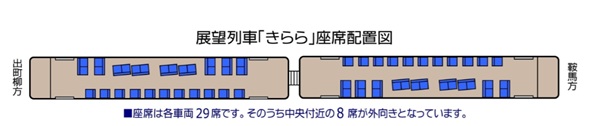 展望列車「きらら」は水曜日と木曜日は一部運休、