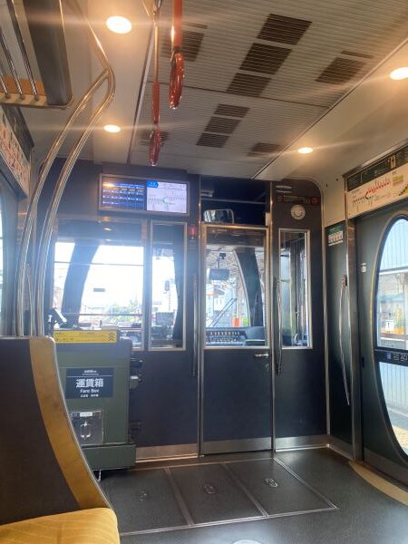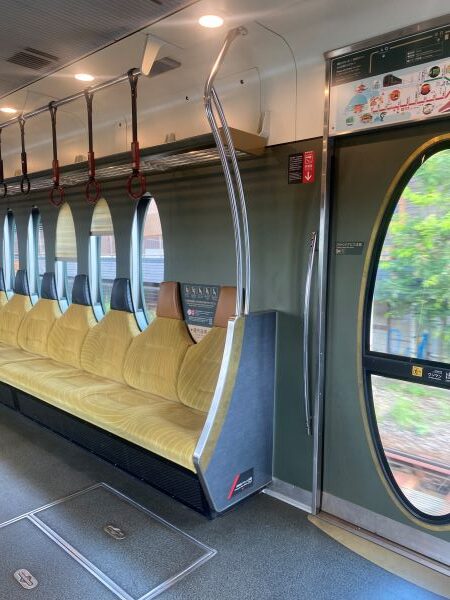 展望列車「きらら」と違い、8人掛けのロングシートになっている。