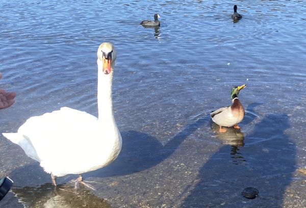 なるほど、水鳥たちもヒトに慣れているし