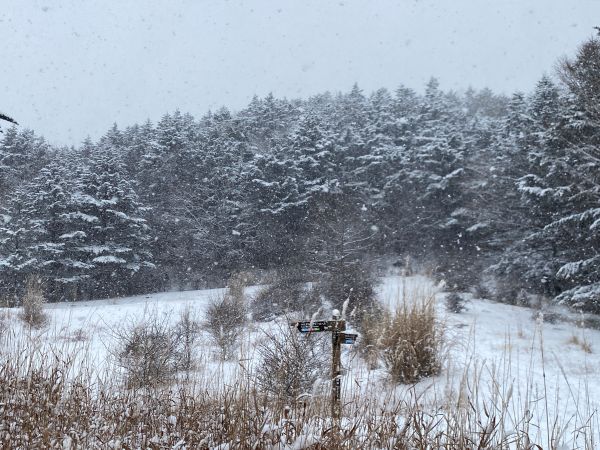 二合目の水ヶ塚公園前の富士山スカイラインは雪で真っ白!