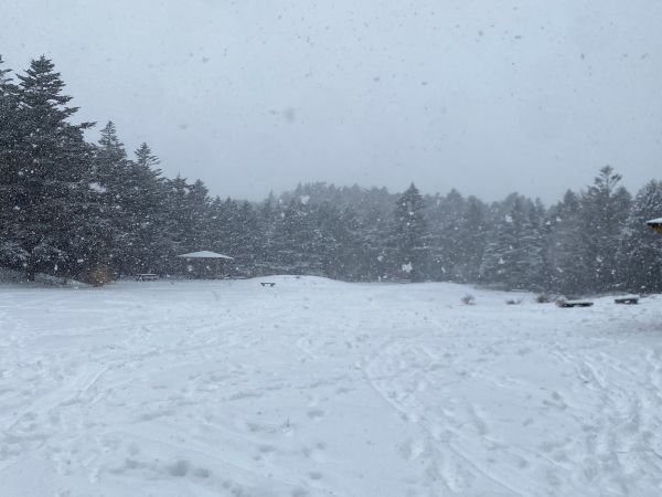 スノーブーツに履き替えて外に出たが、あっという間に真っ白に!