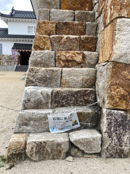 「石投げ禁止」や「石垣に登るな」と書かれた貼り紙があちこちにあり