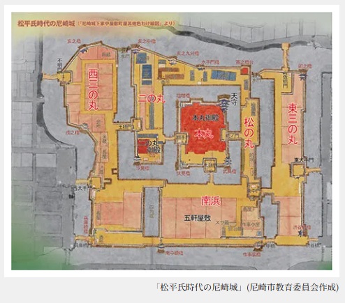 「松平氏当時の尼崎城」の絵図を見ても、これは攻めるのが難しいよね……と