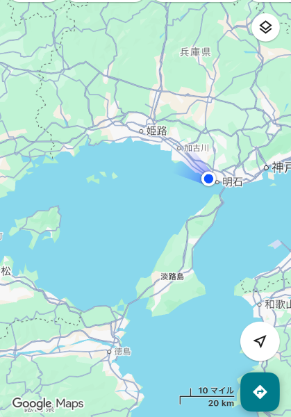 明石海峡大橋も淡路島もそこから離れて行ってもずっと見えていて