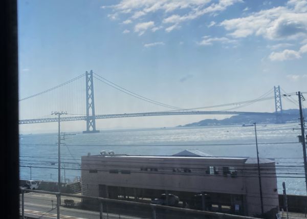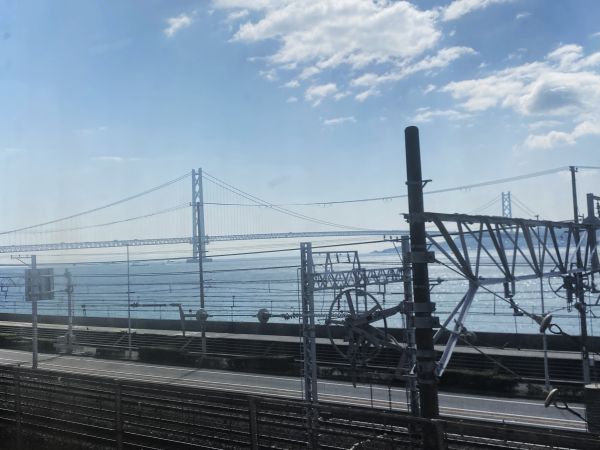 電車は明石海峡大橋の下を通過していった。